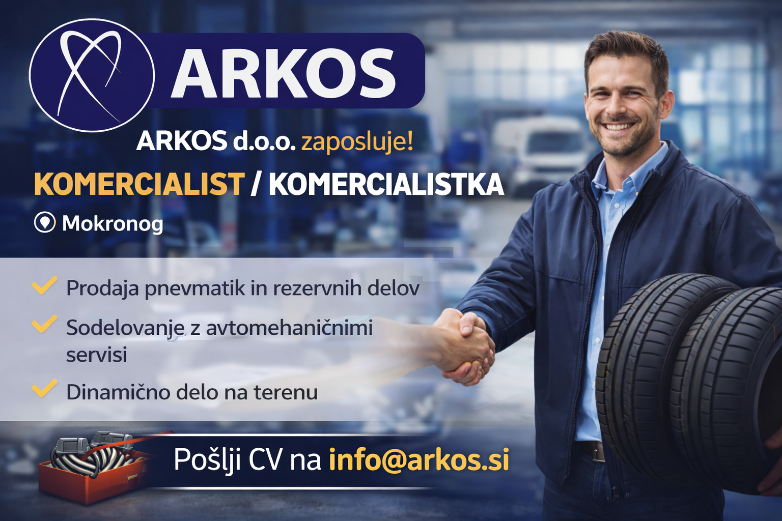 Dobrodošli na www.arkos.si, vaši spletni trgovini za vse, kar potrebujete za vzdrževanje vozil. Pri nas najdete široko ponudbo rezervnih delov, pnevmatik, opreme za delavnico, pa tudi olje in maziva po zelo ugodnih cenah. Ponujamo le priznane in uveljavljene blagovne znamke, ki zagotavljajo kakovost in zanesljivost.