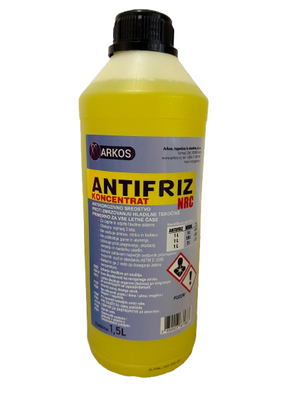 Arkos Antifriz NRC koncentrat 1,5L je zanesljiv koncentriran antifriz, namenjen zaščiti hladilnih sistemov motorjev z notranjim zgorevanjem. Učinkovito preprečuje korozijo kovinskih delov, nastanek oblog ter poškodbe zaradi zmrzovanja ali pregrevanja.